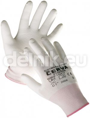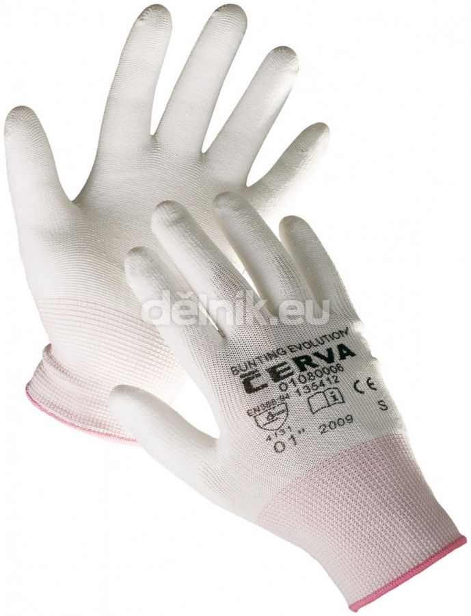 BUNTING EVOLUTION pracovní rukavice, PU dlaň - bezešvý úplet z jemného polyesteru, pružná manžeta, dlaň a prsty pokryté tenkou vrstvou polyuretanu, bílé, velikosti 6 -11