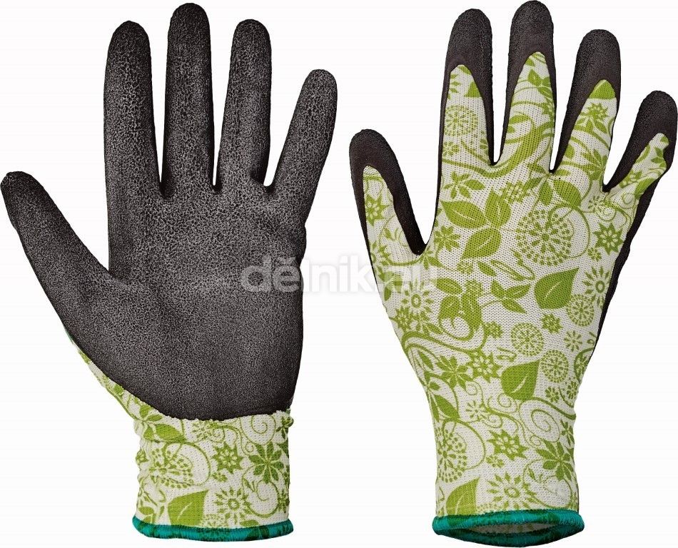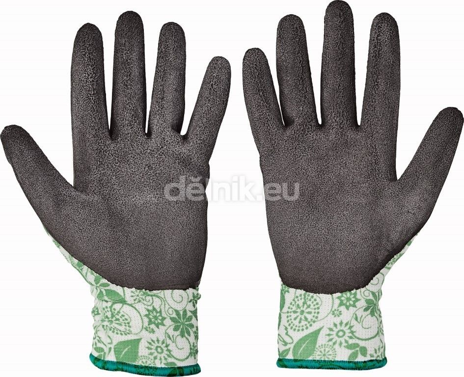 bezešvé rukavice z nylonu s pružnou manžetou, máčené v pěnovém latexu; barevně sladěné s dámskou pracovní kolekcí Yowie