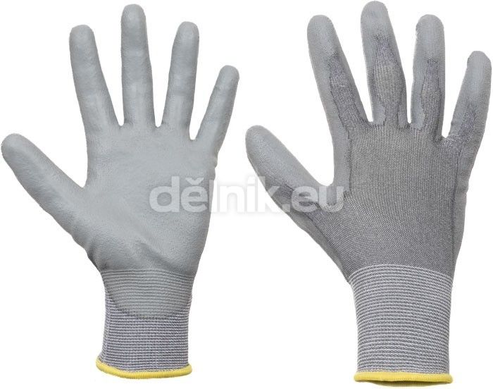 Pletené bezešvé rukavice kategorie prořezu 3, PU na dlani a na prstech, pružná manžeta.
