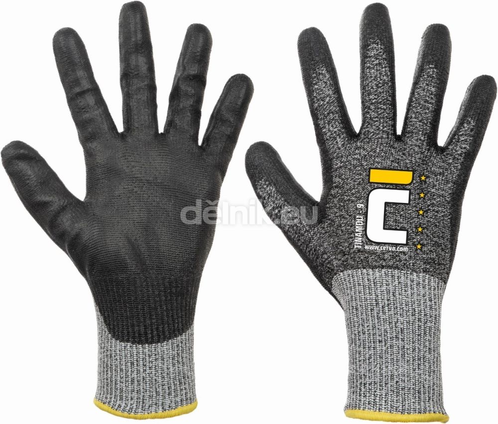 velikosti: 7, 8, 9, 10, 11 barevnost: šedá-černá materiál: polyethylen / polyester / Spandex / ocelové vlákno máčení: polyuretan oblast máčení: dlaň + prsty manžeta: pletená gauge: 13 GG