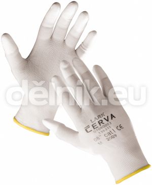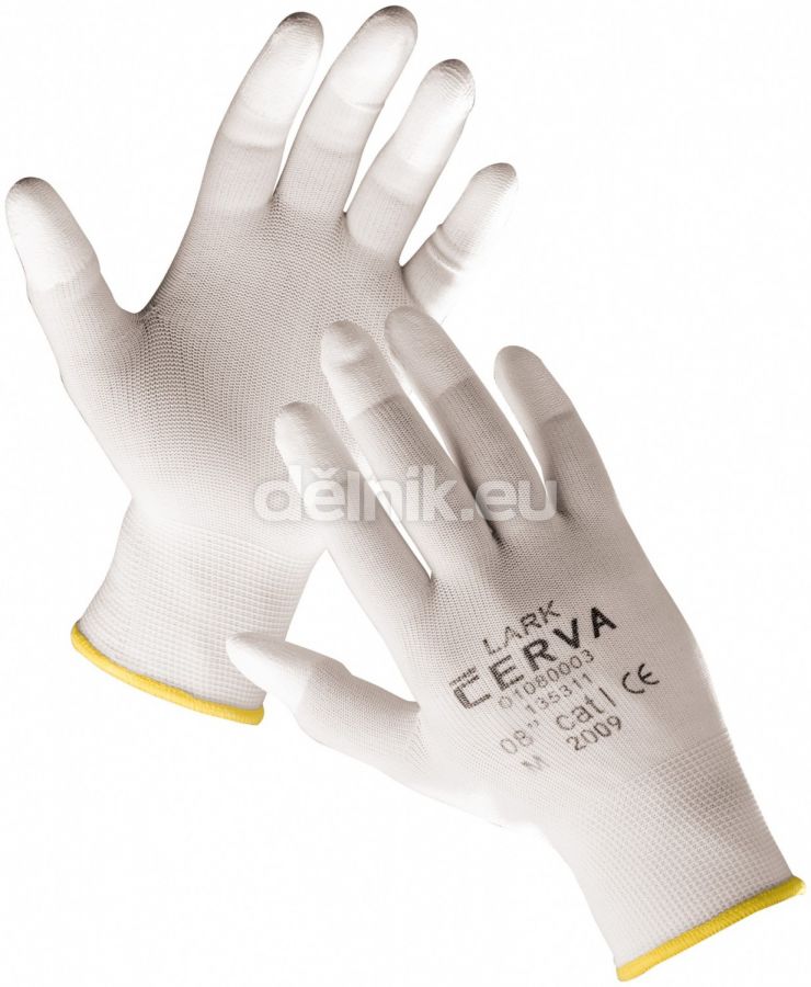 LARK pracovní rukavice nylonové PU prsty - Bezešvý úplet z jemného bílého nylonu, pružná manžeta, špičky prstů pokryté tenkou vrstvou bílého polyuretanu, velikosti 7 - 10