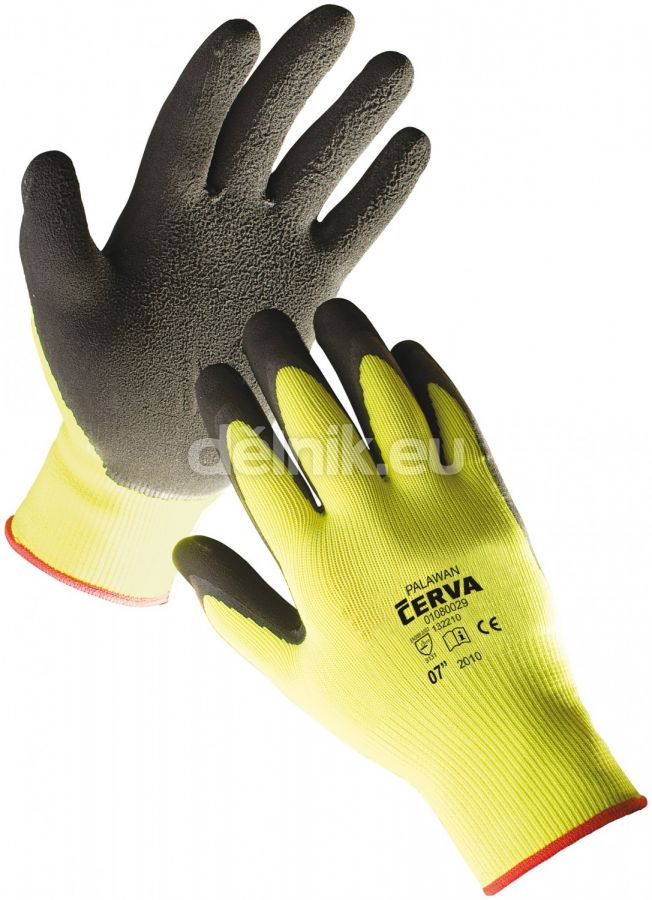 PALAWAN pracovní rukavice nylon. latex. dlaň - Bezešvý nylonový úplet povrstvený mikroporézním paropropustným latexem, náplet na zápěstí, certifi kát dle EN 388, velikosti 7 - 10