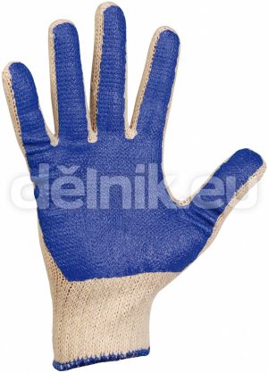 SCOTER pracovní rukavice potažené PVC modré - Bavlněný úplet s pružným zápěstím, polomáčené v barevném PVC, velikosti 9