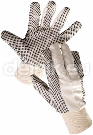 OSPREY pracovní rukavice BA s PVC terčíky - Šité bavlněné plátno, dlaň a prsty s tmavými PVC terčíky, pružný náplet na zápěstí, velikost 10