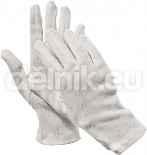 KITE pracovní rukavice bavlněné - Šitý jemný bělený bavlněný úplet, fourchette, bez manžety, velikosti 6 - 13